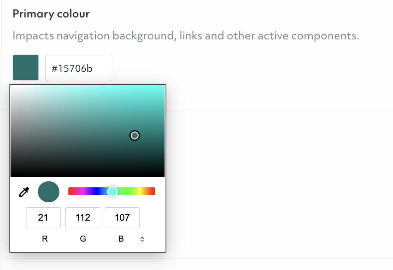 Colours are added to the editor as hex colour codes or with the help of the colour picker.